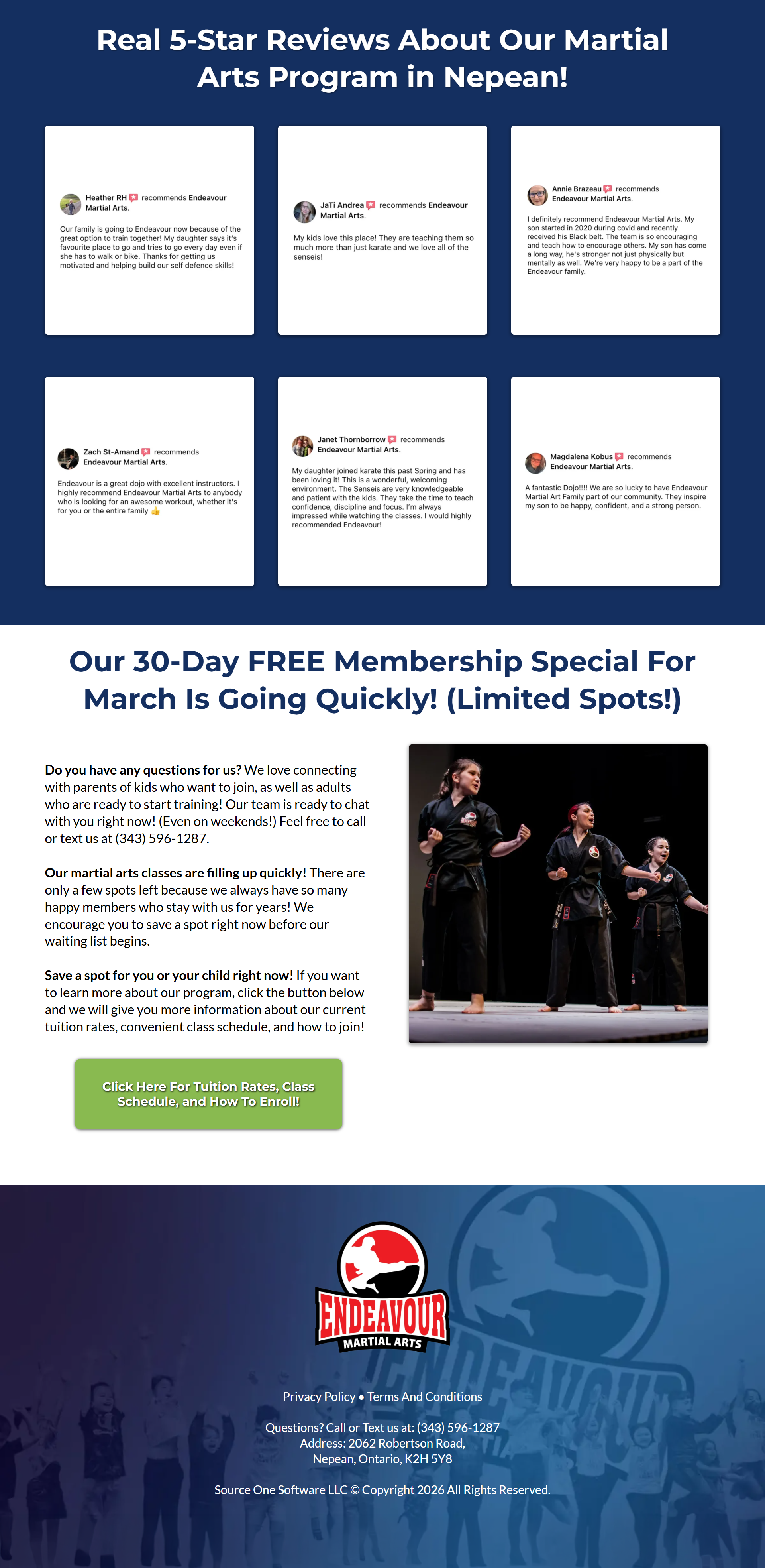 The goal of this redesign was to transform an outdated template-based website into a modern, dynamic landing page that reflects the energy and professionalism of a martial arts school while improving clarity and engagement.
